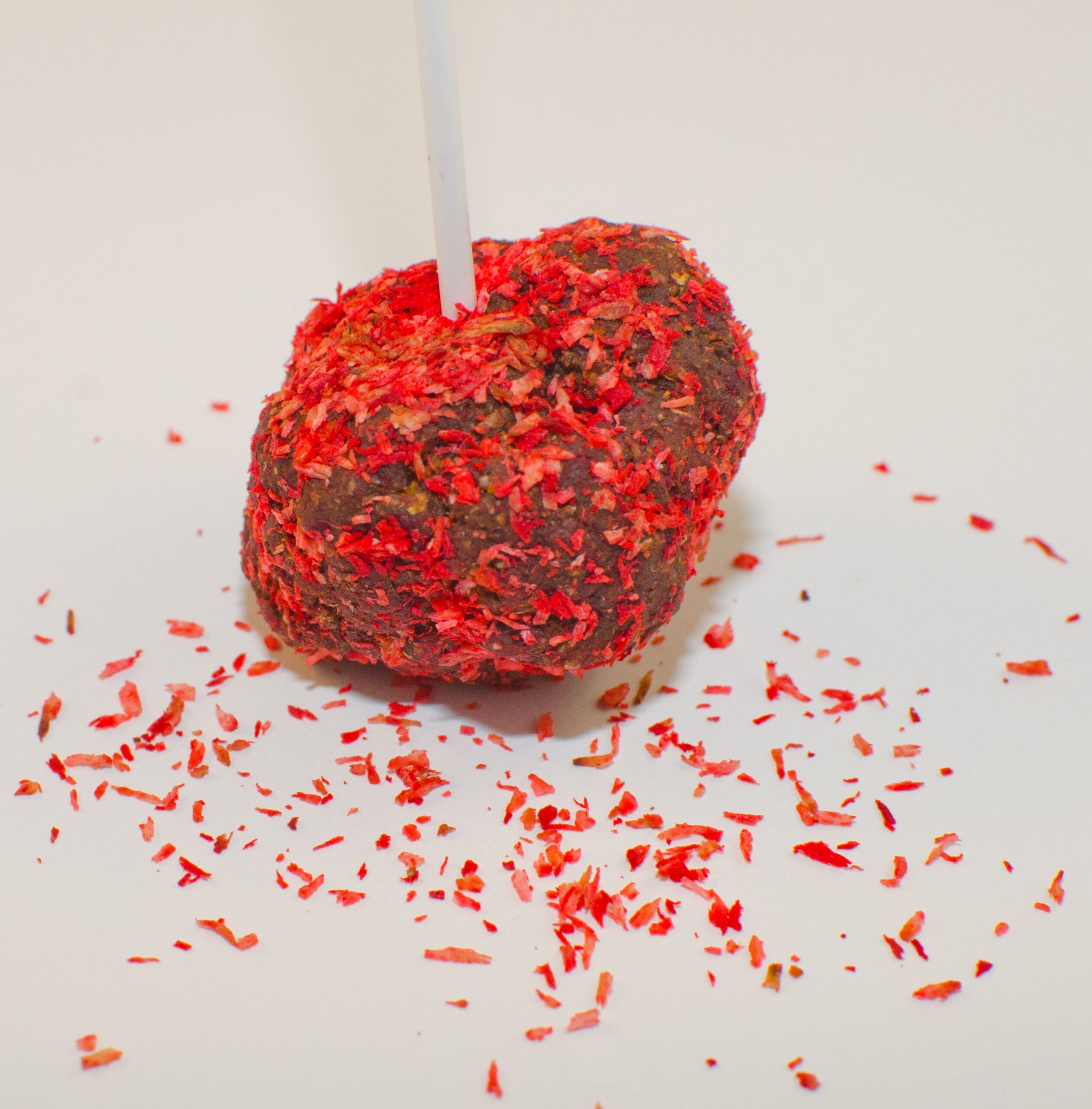 Doggy Treats presenta su Doggy Pop, una saludable bola rellena de batata e hígado de pollo y cubierta de delicioso coco rallado en llamativo color rojo. Elaborada con productos naturales de granjas y huertas de cercanía es el snack perfecto para tu peludo. Retirar el palo antes de dárselo a tu peludo, no comestible. Se vende individualmente en bolsa de plástico de uso alimentario.